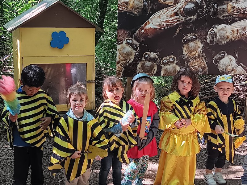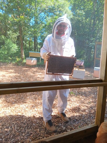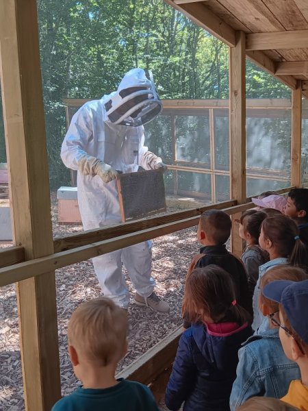 Quelques photos de notre sortie à Finfarine. Nous avons observé l’anatomie d’une abeille, les rôles de chacune : la reine, les ouvrières, les gardiennes.