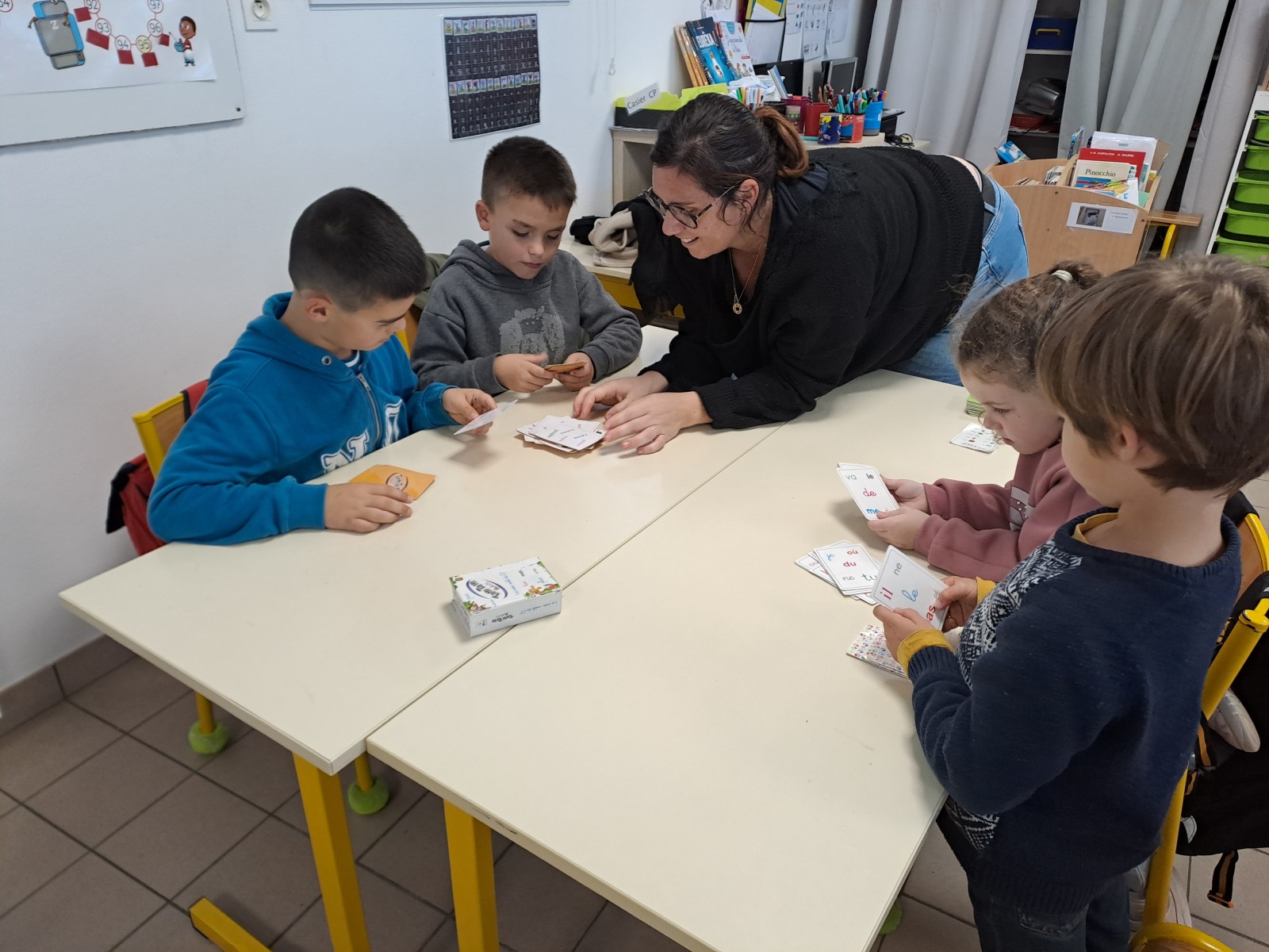 Tous les jeudis en fin d’après-midi, nous apprenons à calculer, écrire, lire, orthographier en jouant à différents jeux :