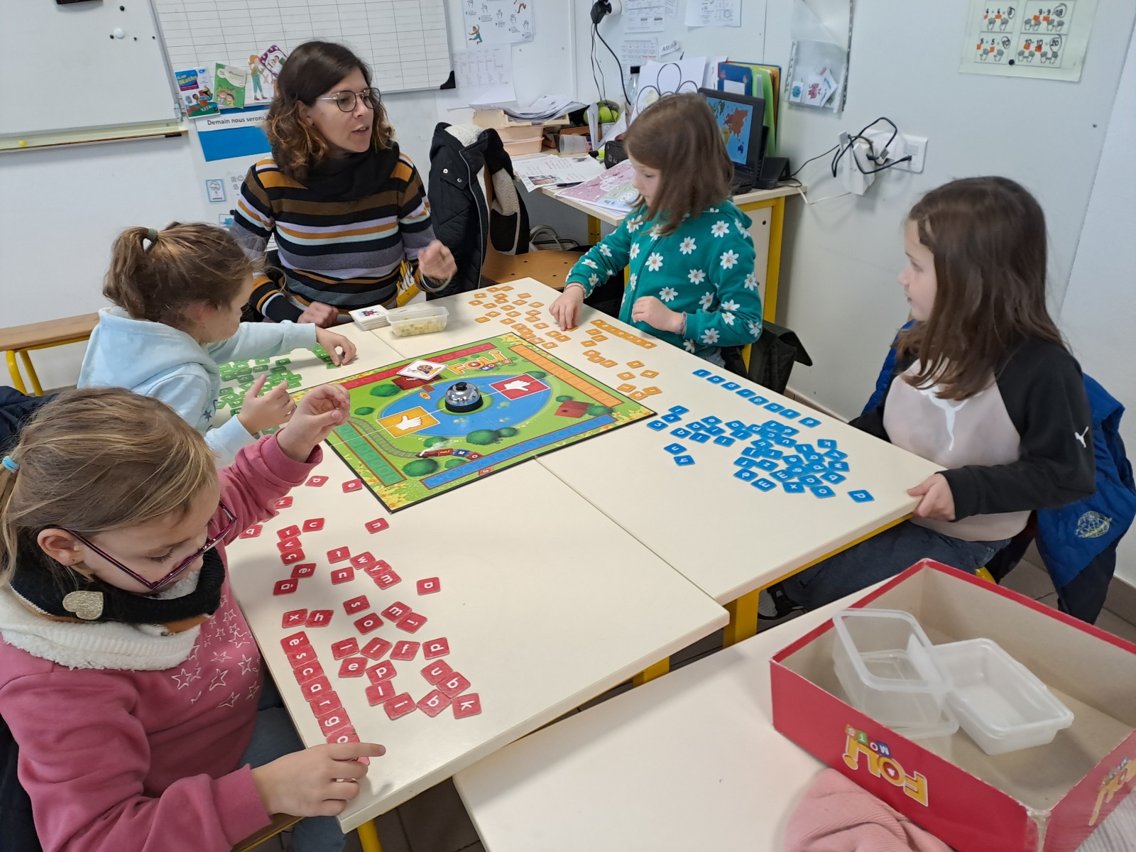 Tous les jeudis en fin d’après-midi, nous apprenons à calculer, écrire, lire, orthographier en jouant à différents jeux :