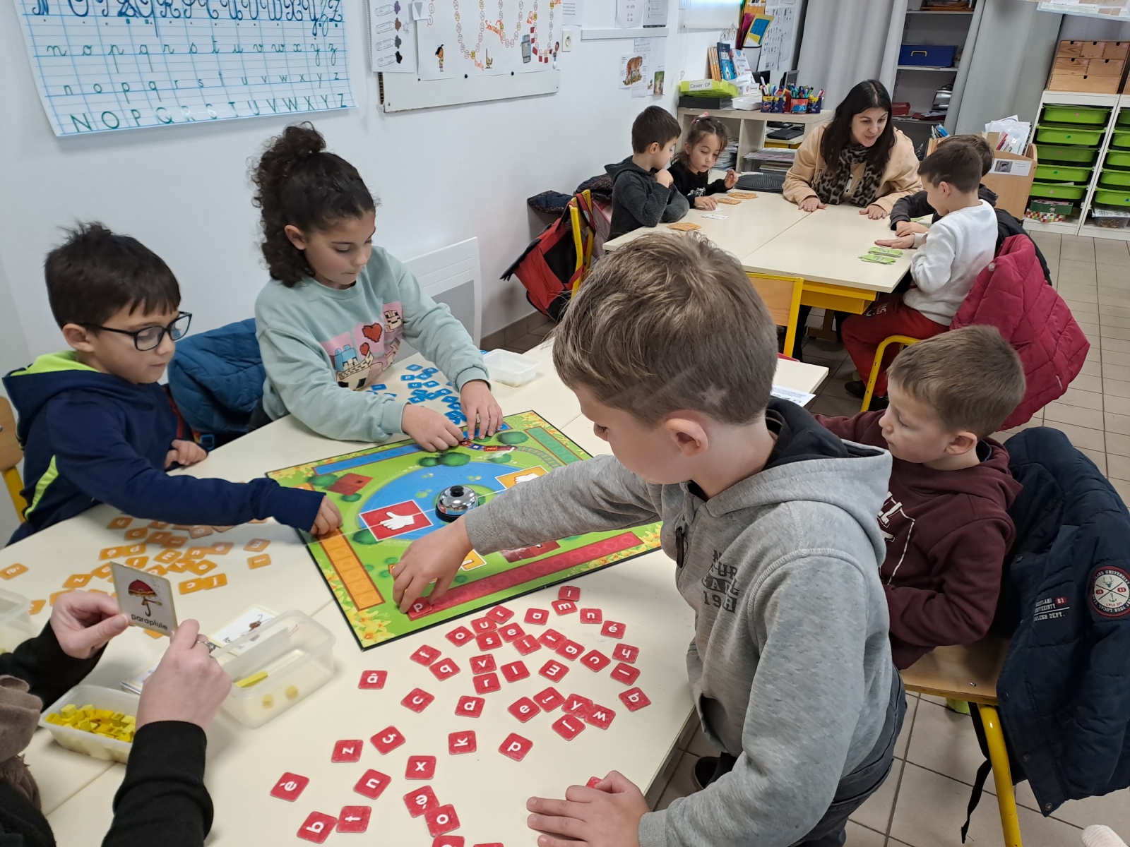 Tous les jeudis en fin d’après-midi, nous apprenons à calculer, écrire, lire, orthographier en jouant à différents jeux :