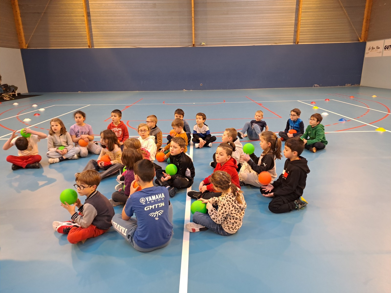 Pendant 3 séances, nous sommes allés  à la salle de sport faire du hand-ball. Gaël animateur du comité vendéen de hand-ball nous a inviter à dribbler, passer, tirer, capter, lancer, se déplacer, arrêter.