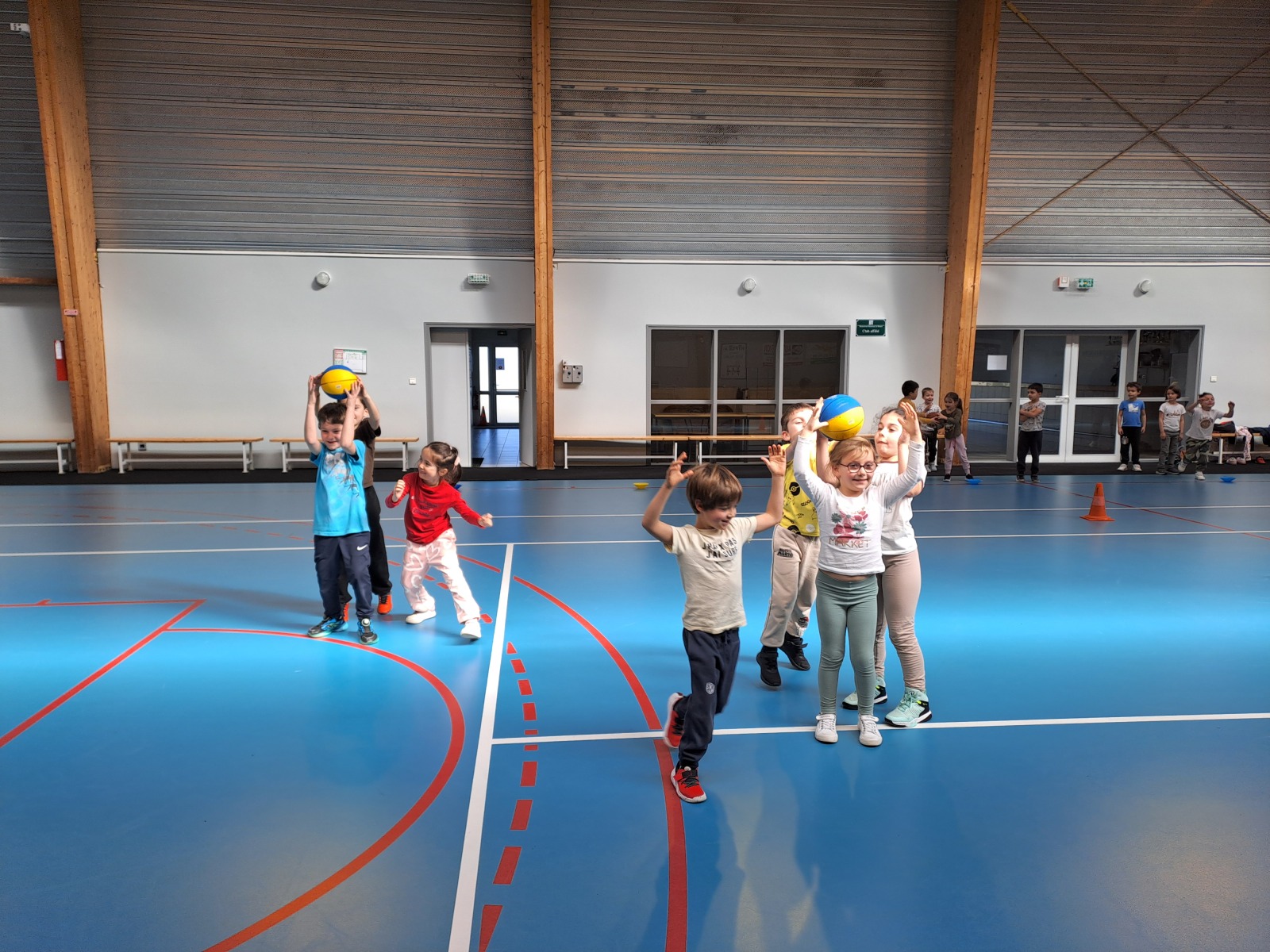 Pendant 5 séances, Maxime éducateur salarié du basket club d’ Aizenay nous a appris à dribbler, à passer, à tirer au panier. Nous avons joué aux jeux du capitaine, du déménageur et nous avons fait un relais de passes avec ou sans rebond. Nous avons également fait un petit match.