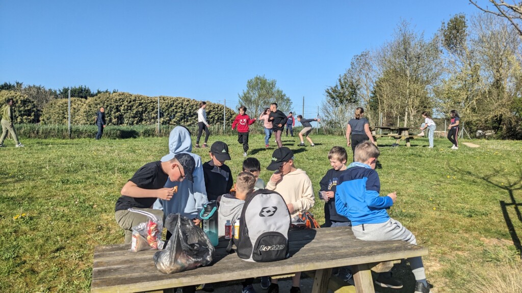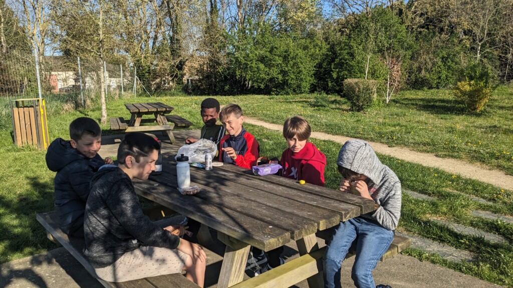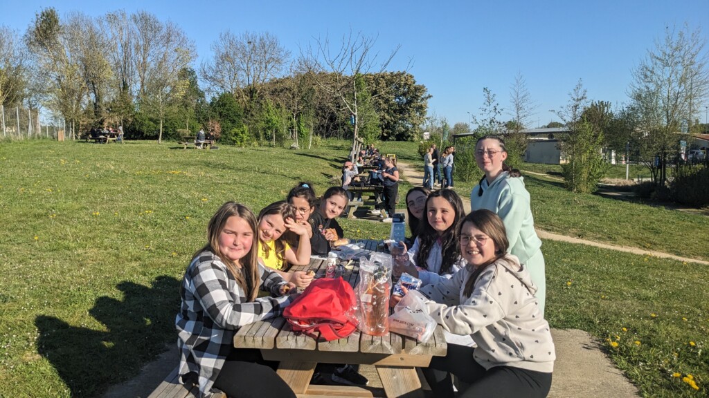 9h30 Pause goûter entre Le Mans et Chartres. Tout le monde va bien. Pas de malade !👍