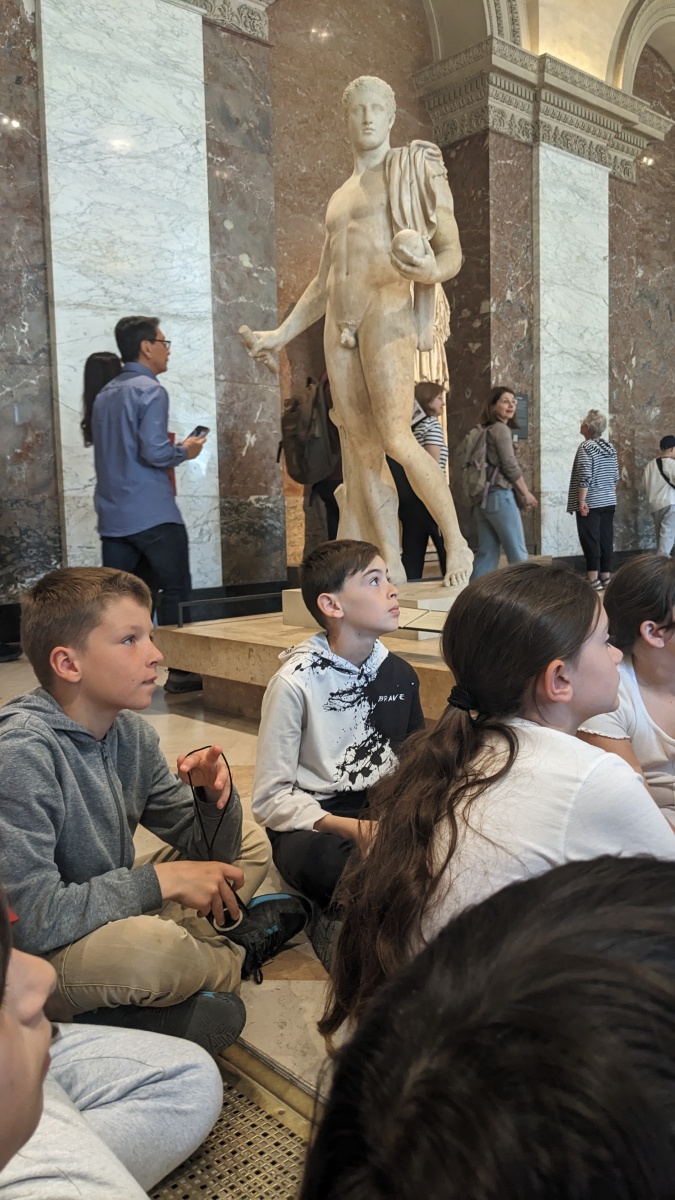 Nos 2 guides nous attendent au Louvre. La visite est somptueuse et les enfants sont captivés par les guides