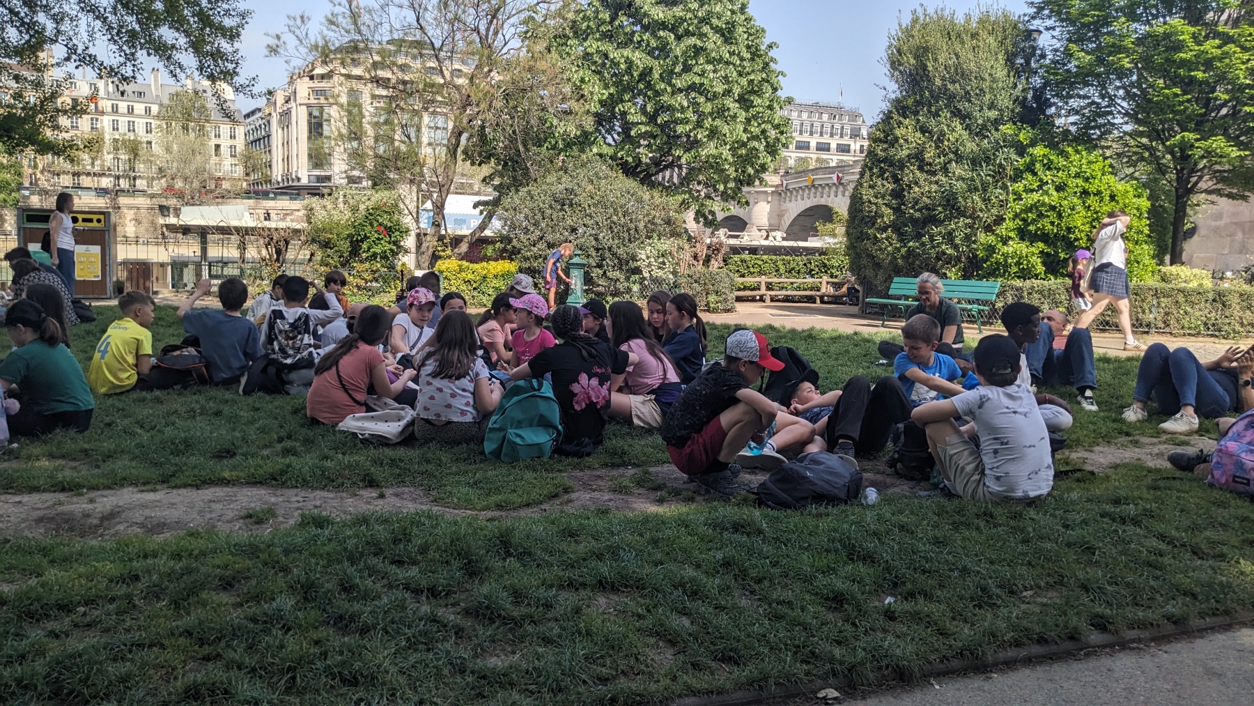 On pique nique dans le jardin des Tuileries où il faut trouver de l’ombre tellement il fait déjà très chaud.